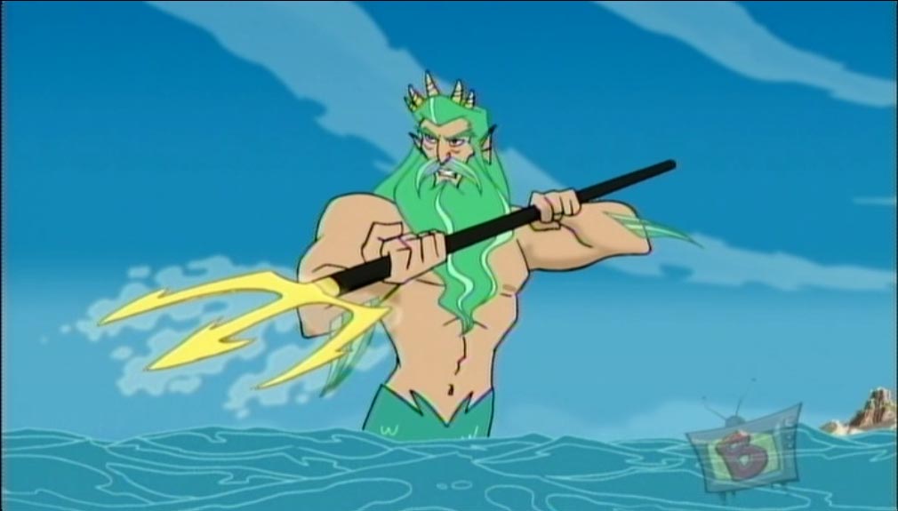 Poseidon is the God of the Sea and one of Cronus's six children. He is armed with a giant trident that can be used by others to control water, though he also seems to be able to exert some control without it, such as when creating water tunnels.